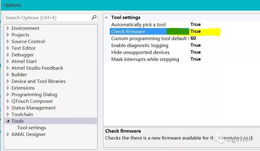 1. 好消息,上周Atmel Studio 7的最新版本1931发布了,赶紧去更新吧,工具的Firmware不能升级的问题已解决啦,可以选择True来更新了。